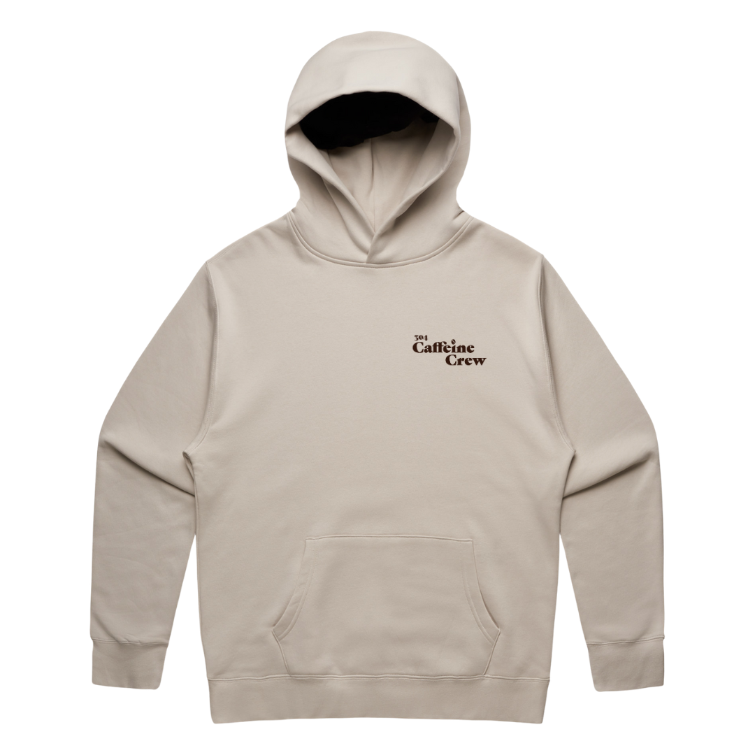 Featuring a playful “Caffeine Crew” back graphic with vintage café vibes, and clean printed detail on the front chest, this hoodie doesn’t just serve looks—it serves energy.