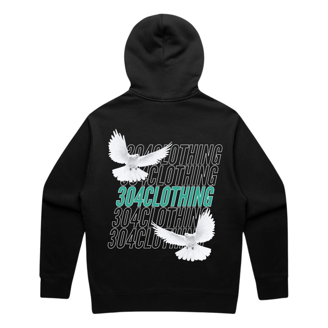 The dove graphic on the back speaks to freedom and clarity, with layered 304Clothing typography for added dimension. Clean front branding keeps it understated.