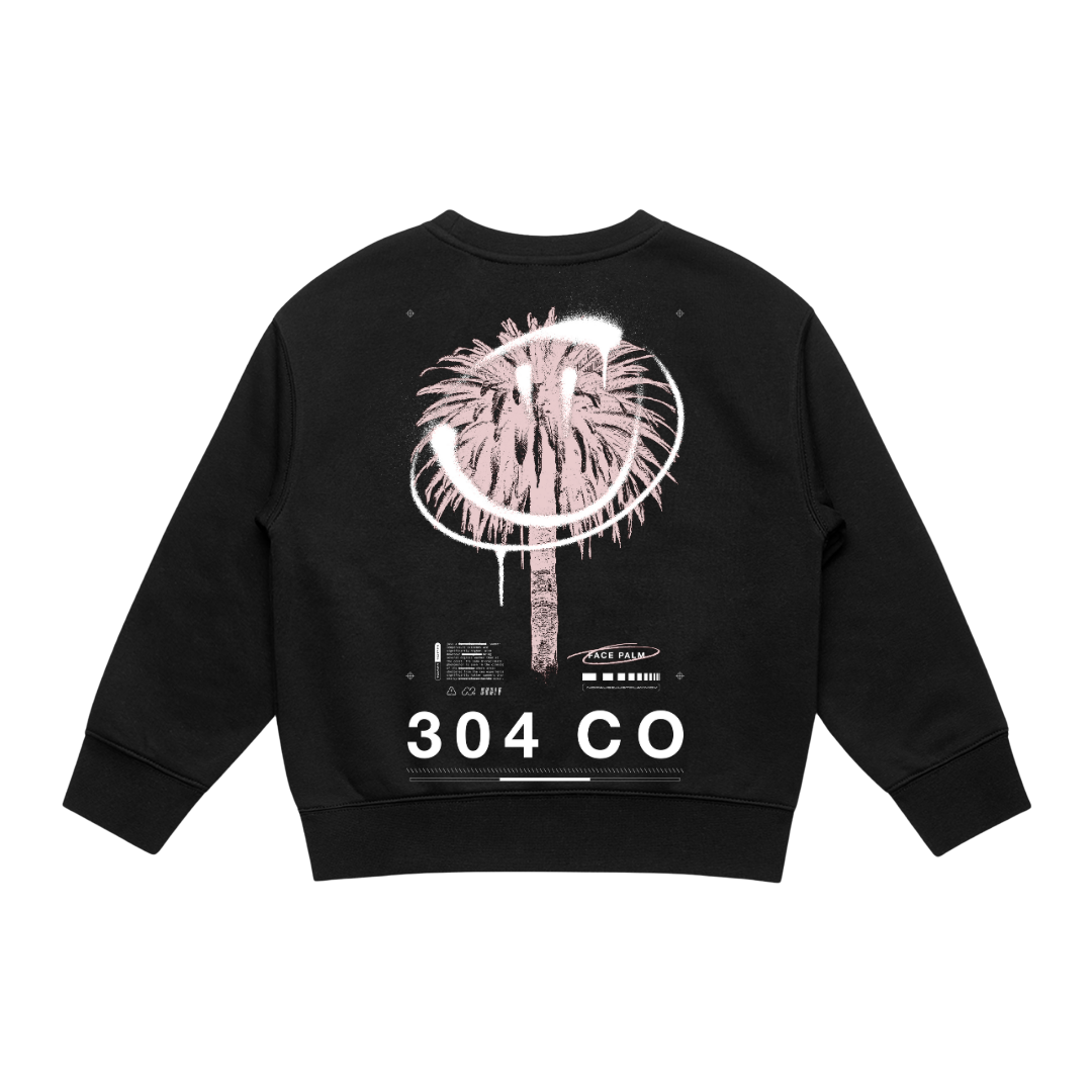 The back graphic takes centre stage — a cracked-smile spray print with glitch-style elements and 304 CO. tagging to bring the edge.