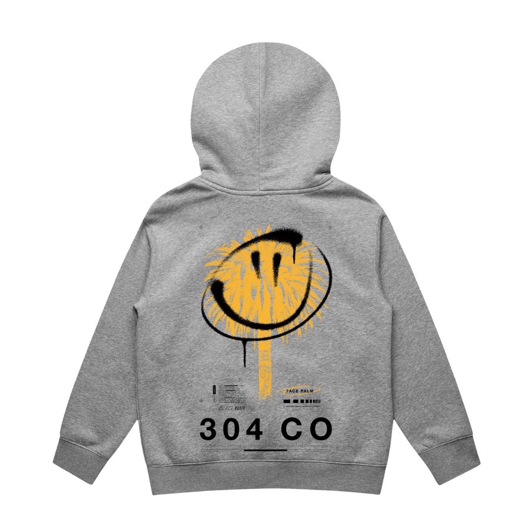The front keeps it clean with the 304 CO. logo, while the back hits different with a bold spray-style smiley graphic that feels straight off the street.