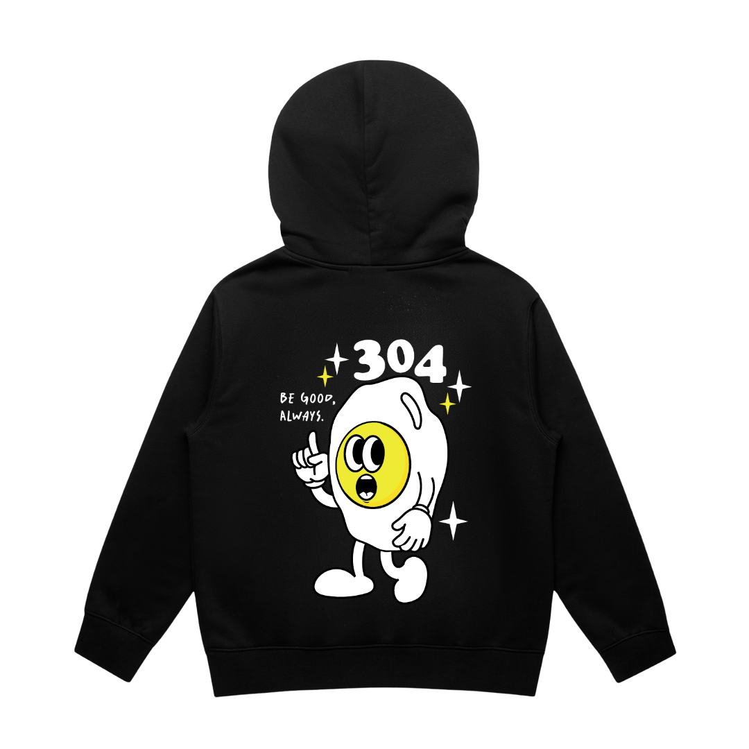 On the back, your new favourite character: the walking egg, repping “Be Good. Always.” in full bold energy.
