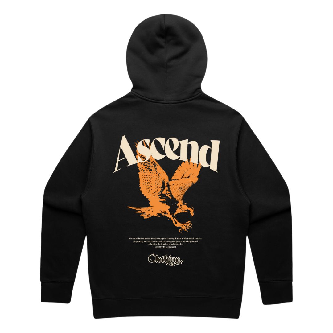 The bold "Ascend" graphic on the back, featuring a soaring eagle, captures the spirit of rising above—no matter how many times you fall. Paired with clean front Ascend logo, it balances presence with simplicity.