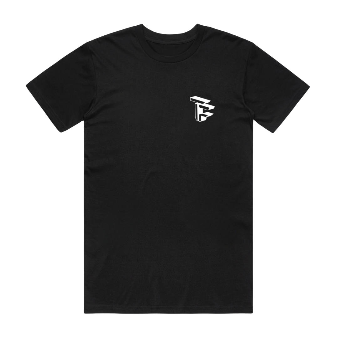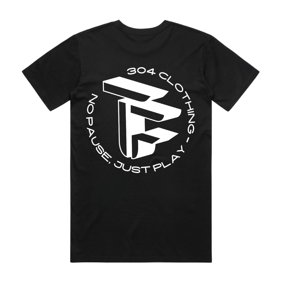 The No Pause T-Shirt in black features a compact 3D-style chest logo and a large-scale back print with the brand mantra wrapped around it. Designed to move with intent, this piece blends energy and attitude into one sharp silhouette.