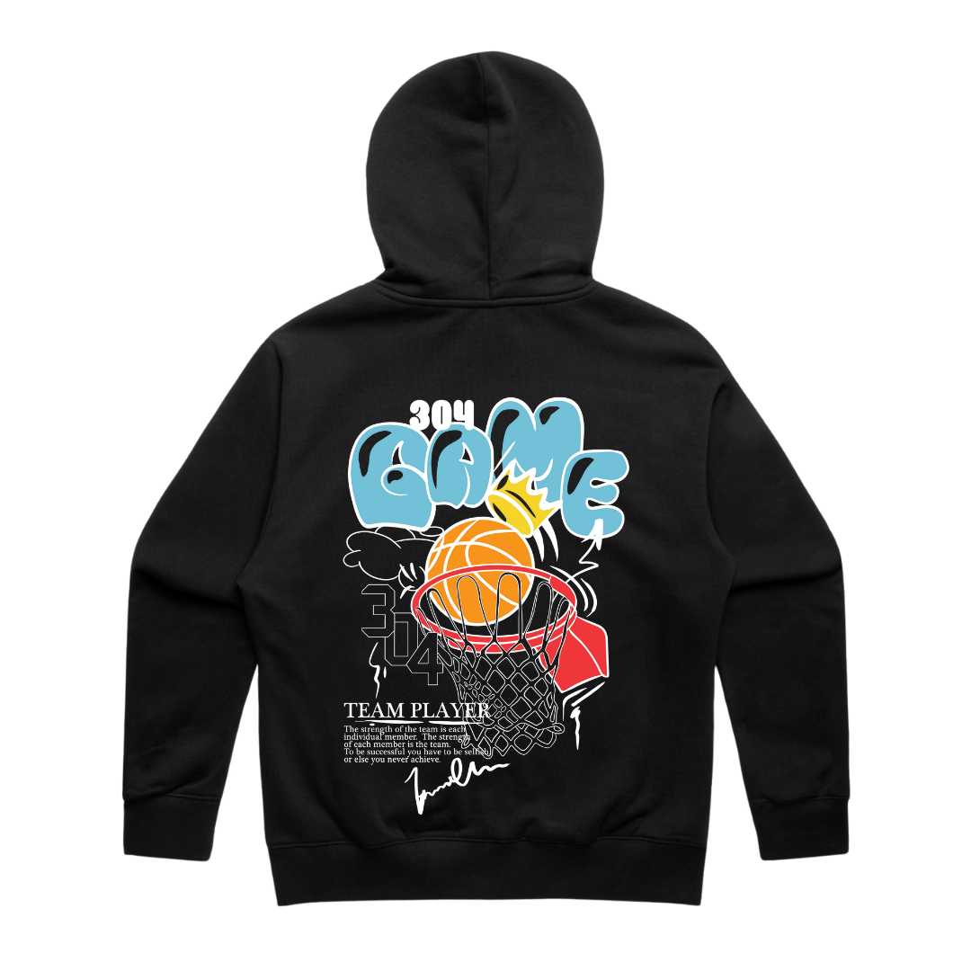 The bold back print fuses vibrant basketball-inspired artwork with a message about unity, reminding us that no win is ever truly solo. The front keeps things clean with subtle 304 Team Player branding.